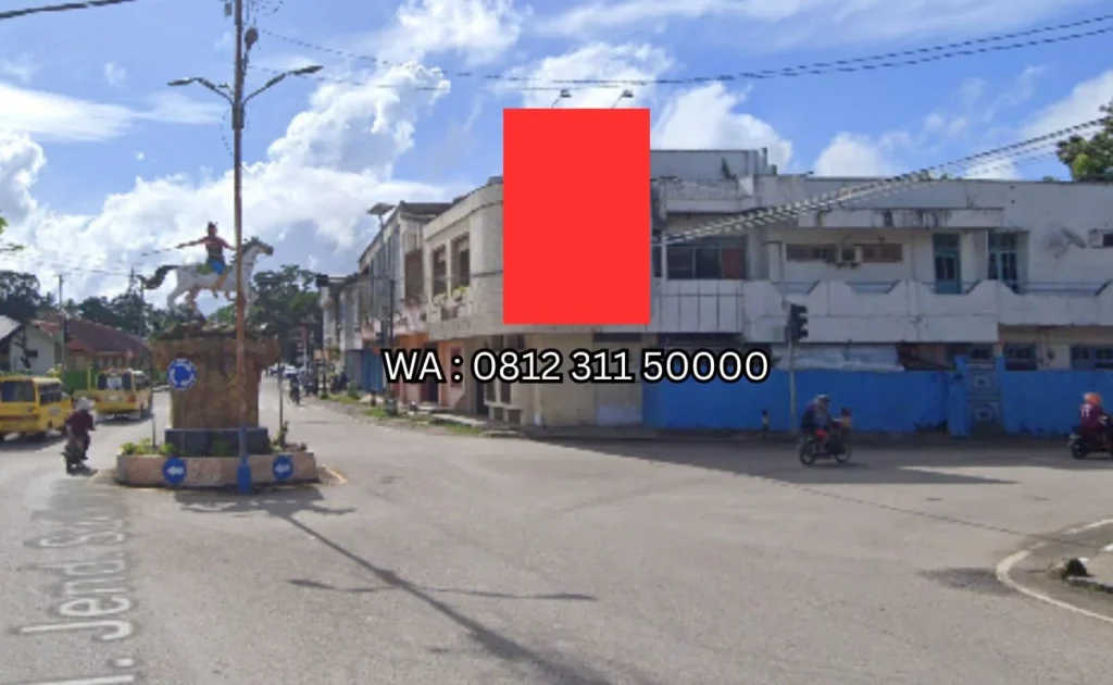 Jalan utama di pusat kota yang ramai dilalui masyarakat dan dekat dengan pusat pemerintahan serta kawasan bisnis.